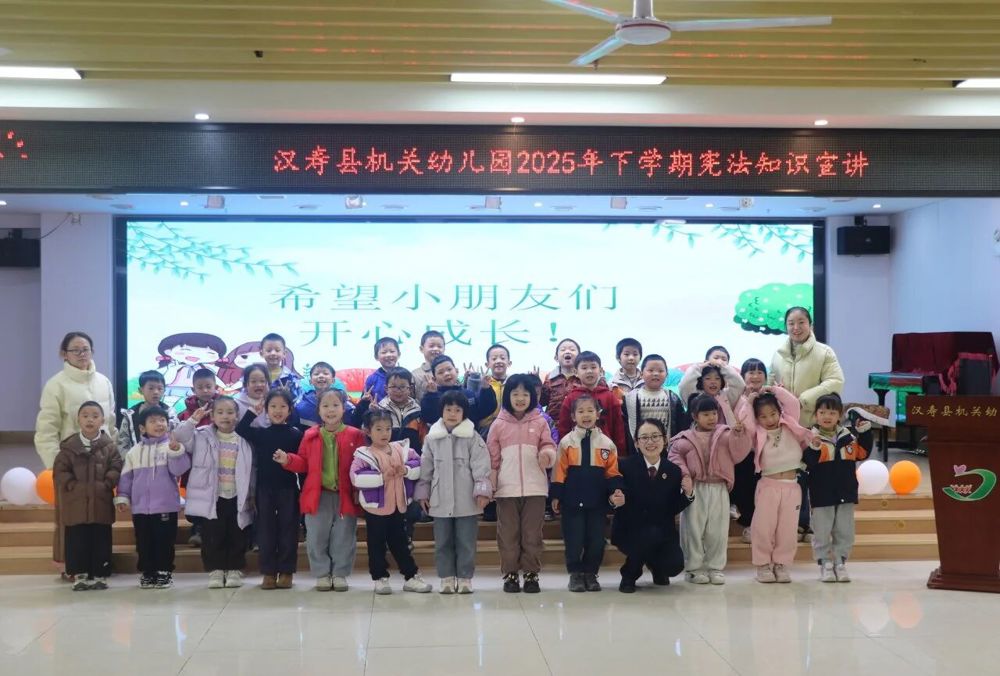 为增强全社会宪法意识,弘扬宪法精神,帮助儿童树立法治意识,在宪法宣传周,汉寿县人民检察院未成年人检察办公室检察官姐姐走进汉寿县机关幼儿园,以“宪法知识问答”的形式向幼儿园大班儿童开展专题普法活动。